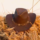 Men and Women Brown Genuine Leather Cowboy Western Hat