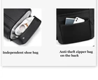 Product Name: travel Backpack Material: Oxford cloth Size: 55 * 35 * 19CM Weight: around 1.25KG Comfortable: business / work / travel / outdoor Features: USB charging + headphone jack Independent shoe pockets, metal vents Environmental protection, wear resistance, waterproof Side waterproof and wet separation bag Side zip pocket Anti-theft zipper bag on the back 17 inch laptop bag Breathable back cushion, can be inserted into the suitcase Glasses hanging design Shoulder strap non-slip buckle