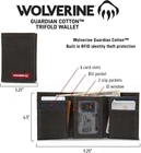 WOLVERINE's Canvas/Leather Trifold Wallet combines rugged oil tanned leather and durable cotton canvas for a rugged look and feel. This wallet comes complete with six card slots, two slip pockets, billfold compartment and ID window. The wallet is also lined with RFID- protective lining to keep your credit card data secure. WOLVERINE Accessories - as developed and sold by 5 Horizons Group, LLC - are covered by a Limited Warranty against manufacturing defects in materials and worksmanship for the normal life of the product.