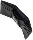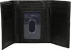 STEVE MADDEN GENUINE LEATHER RFID WALLET - A genuine leather slim compact trifold wallet with RFID technology, featuring 6 credit card slots, 3 additional pockets underneath the credit card slots, a clear ID slot, two cash pockets and an emBOSSed STEVE MADDEN logo.