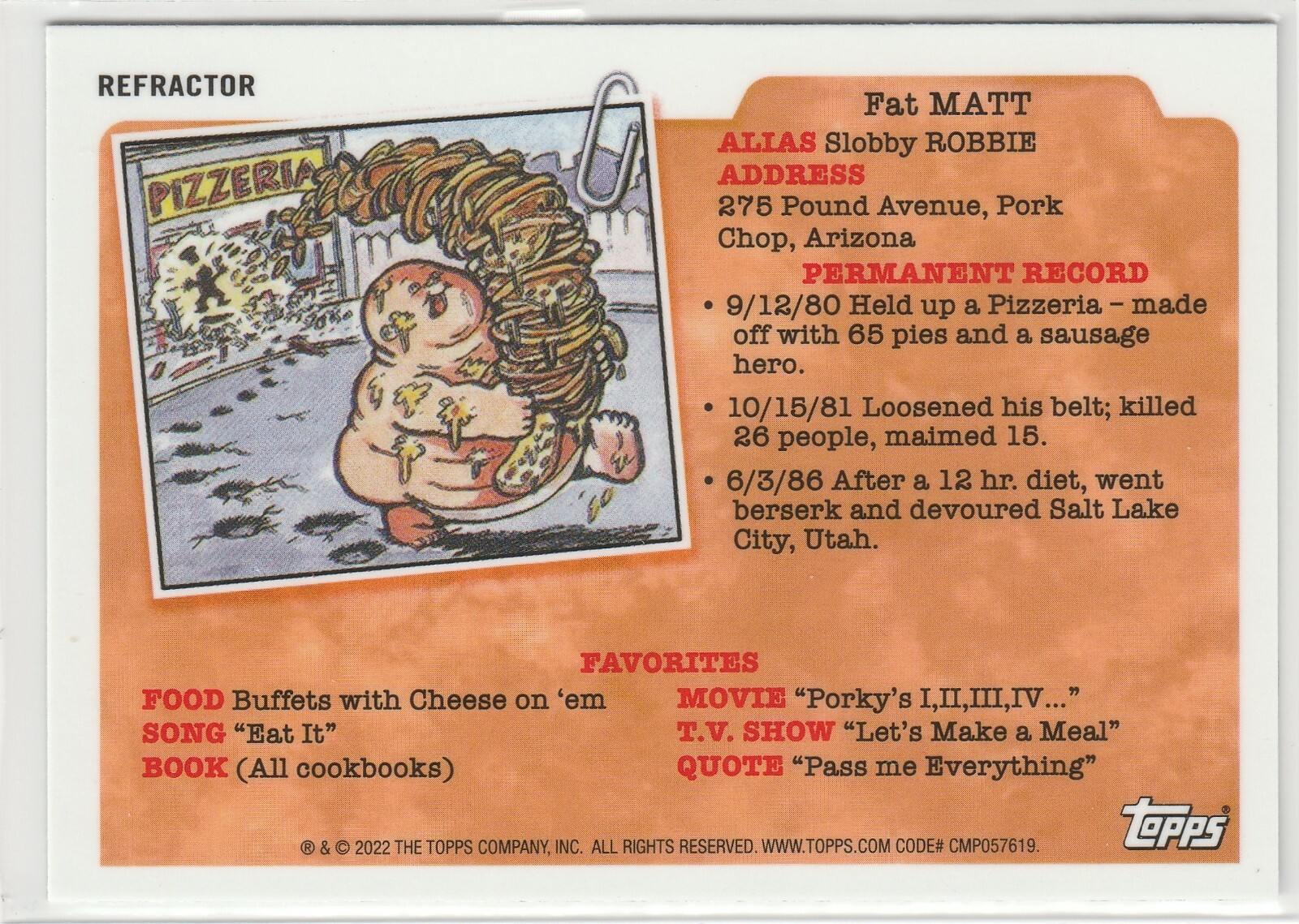 $ 4.75Hot Doug #185b Refractor Garbage Pail Kids 2022 Chrome Series 5 CS5 Rare