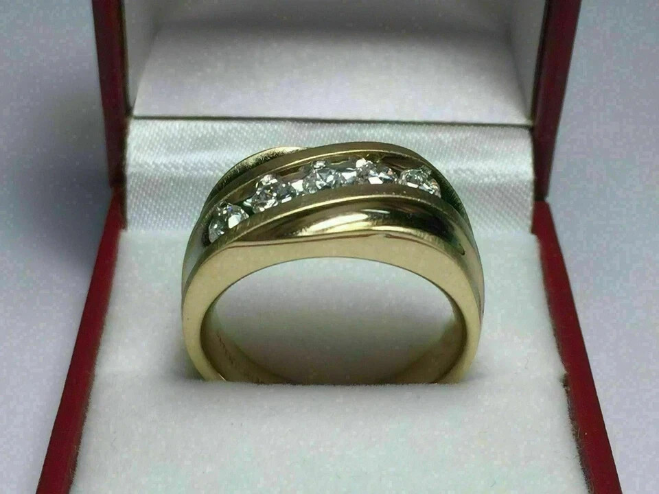 Metal: Sterling Silver Cut Grade: Excellent Main Stone Color: White Vintage: Yes Main Stone Creation: Natural Base Metal: Sterling Silver Material: Stone Brand: vihaan-jewels Country/Region of Manufacture: United States Main Stone Shape: Round Style: Band, Eternity Occasion: Anniversary, Birthday, Christmas, Engagement, Father's Day, Graduation, Valentine's Day, Wedding Band Width: Unknown Wholesale: Yes Customized: Yes Number of Diamonds: As Per Image Total Carat Weight: 2.00 ctw - 4.99 ctw Colored Diamond Intensity: Fancy Features: Engraved, Nickel-Free Handmade: Yes Diamond Clarity Grade: Very, Very Slightly Included (VVS1) Shape: Round Department: Men Signed: Yes Country of Origin: United States Theme: Beauty, Love Metal Purity: 925 Setting Style: Prong Certification: N/A Main Stone: Moissanite Ring Size: 10 Number of Gemstones: N/A Diamond Color Grade: D Personalization Instructions: As Per Buyer Requirement Secondary Stone: No Stone Main Stone Treatment: Not Enhanced Seller Warranty: Yes Color: Yellow Gemstone Clarity Grade: Eye Clean Personalize: Yes Antique: Yes Type: Ring Sizable: Yes