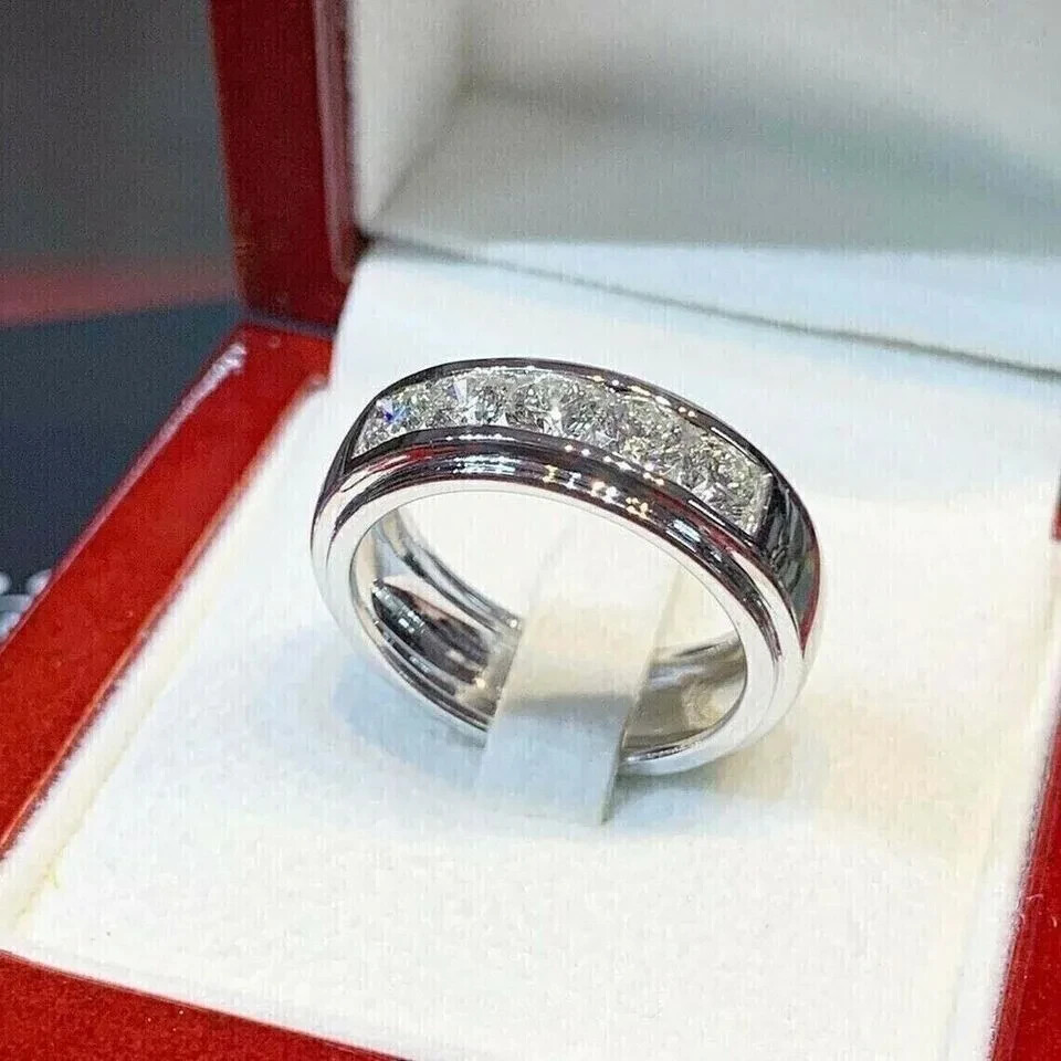 $ 6.86Blue Crystal Cz Mens Silver Ring Wedding Fashion Rings Jewelry Man Accessories