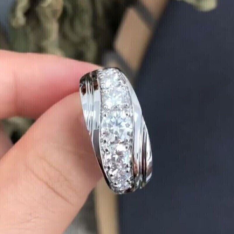 Men's Engagement Wedding Band Ring 3Ct Round Moissanite 925 Sterling Silver Description Product Details Metal Sterling Silver Metal Purity 925 Metal Finish Polish Main Stone Details Stone Type Natural Moissanite Stone Shape Round Stone Color D Stone Clarity VVS1 Stone Treatment Natural Total Carat Weight (approx.) 3.00 Ct Jewelry Type Ring What sets us apart? Handcrafted Made to order NICKEL FREE - hypoallergenic & Environmental friendly highest quality Customize your dream jewelry ENGRAVE PERSONAL MESSAGES Shipping Shipping through India Post only Tracking on your local postal website Express shipping reaches in 5 to 7 days Economy in 15 to 20 days after it has been shipped Check the exact handling time in each product to know when they can be shipped The days mentioned here are approximate Custom duties, taxes, VAT etc are buyers responsibility. Please check at your port before ordering Terms of Sale If we do not receive the ring size within 3 days we ship 7 US size for woman and 9 for men Please ask all the questions before ordering If you have a specific date you need the jewelry by, please message us If you have any questions, please message us Customized product cannot be returned for refund or replacement C ontact Us If you are happy with our product don't forget to leave us your feedback. Your feedback is very important to us; if you are unhappy for any reason please contact us