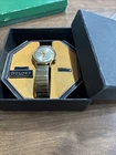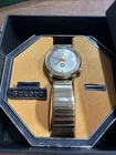 This is an interesting find.. a 218 RUNNING Accutron in what looks like the original box. It has a new battery and it runs, but also the clip ring on the back does not go with this watch. I included it anyway. But you can’t close the back. I tried to set the time but that appears to not be working. Ask any questions before you bid / buy.
