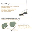Description WHAT ARE THE FEATURES AND BENEFITS OF MENS AVIATOR SUNGLASSES 1. Aviator sunglasses for men Classic american us military navigator sunglasses, metal frame give you old school officer style, revamped fashion color also suit shape hip-hop and streetwear trends 2.Polarized aviator sunglasses for men and women.100% UV protection, TAC polarized mirrored flash lens, Reduce reflective glare, improve your vision 3.Sunglasses for men military have lightweight and comforable bayonet temple ear pieces curve inward to easily fit underneath helmets headgear or head phones 4.Pilot sunglasses for men, with Skin-friendly nose pads made of soft silicone material, support long-time wearing without fatigue Best choice for you boyfriend,girlfriend,father or mother gifts WHAT YOU CAN GET? 1* Exquisite Leather box 1*Cleaning soft fabric sunglasses pouch HOW CAN I PROLONG THE LIFE OF SUNGLASSES? Never clean your sunglasses with paper towels or clothing, and also avoid using household detergents or soaps. Always and only dry with a microfiber cloth so you dont scratch them Please our support team when you need AVIATOR SUNGLASSES for MEN: Polarized lens provide 100% UV400 protection, anti-glare, reduce eye fatigue, improve vision, protect eyes perfectly MILITITARY AVIATOR SUNGLASSES: 55mm polarized aviators square pilot sunglasses metal frame with rich color lense suit for men women wear when fishing, driving, running and golf, air force etc BAYONET TEMPLE SUNGLASSES for MEN MILITARY: Bayonet Temple are a Full Rim frame made of high quality materials in a classic Aviator style, curved inward to easily fit underneath helmets headgear or headphones for comfort, performance and protection SKIN FRIENDLY NOSE PADS: Environmental and skin-friendly soft and comfortable wearing for long-time wearing without fatigue RISK-FREE SHOPPING: us if you are not completely happy with your purchase,our team will solve the problem until you're happy. Best choice as a gift