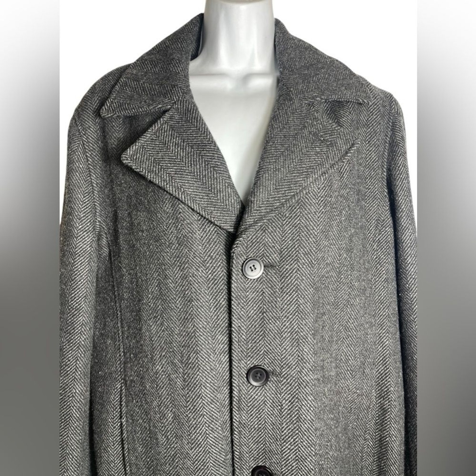 This coat is a fantastic find! The grey wool blend looks sharp with the Chevron pattern, and the fit is perfect—roomy but still stylish. The inside and outside pockets are super handy, and the quality is top-notch. It’s in flawless condition, feels warm, and looks way more expensive than it is. Definitely worth every penny!