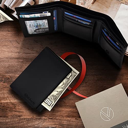 $ 7.6Mens Slim Minimalist Wallet with Money Clip, Pop Up Card Holder Bifold Wallet