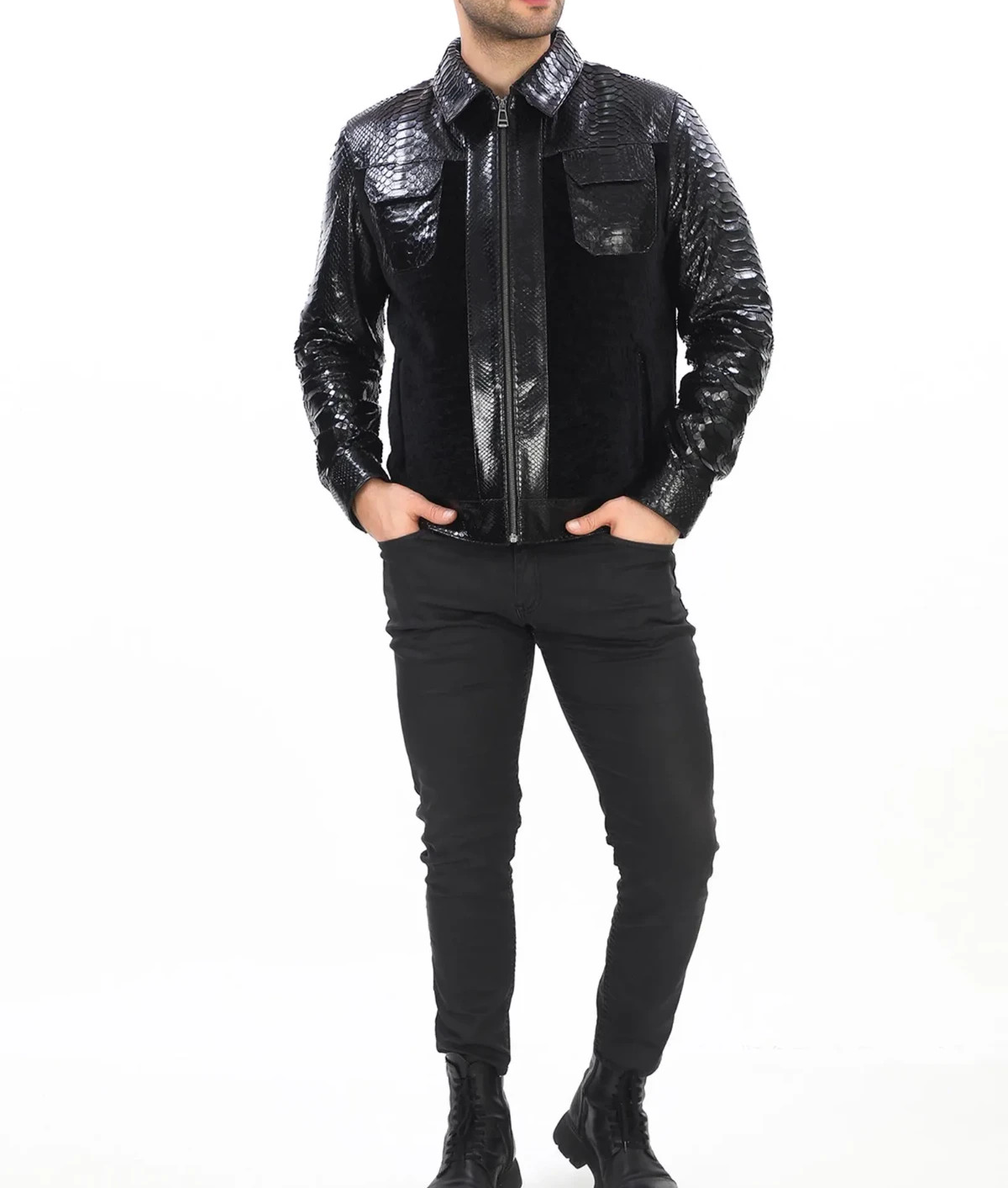 Abez Leather Fashion Item Details Men's Luxury Black Leather Jacket Crocodile Embossed Print Biker Bomber Style Turn heads with this bold black python print leather bomber jacket. Crafted from premium leather with an embossed snakeskin texture, it features a sleek zip-up front, ribbed trims, and a slim, modern fit—perfect for luxury streetwear or statement style Available in all sizes for the perfect fit! Size and Color Consult the provided size chart in the image to ensure a perfect fit. Follow the instructions for accurate measurements. Unsure about sizing? Send us a message with your body measurements, and we'll tailor your jacket accordingly. Enjoy our FREE CUSTOMIZATION service to meet your specific requirements; simply get in touch with us. Explore a variety of COLORS by contacting us for your preferred choice. Crocodile Print Embossed Leather Jacket. Not Real Crocodile/Alligator Skin. We Also Accepted Bulk Orders. Customize / Tailor Made Leather jacket for Men & Women in Sheep / Lamb antique leather jacket Customize your order to meet your specific requirements. Dear Customer, Please answer the below questions in order to serve you better : Shoulder = Chest = Arms = Waist = Sleeves = Tummy = Length of jacket = HIP = Actual height = Shipping Information Color of actual product may vary due to photography/light effects & also due to computer screen resolution and color settings. Buyer will bear custom-duty/Import duty charges. Orders are shipped using DHL or FedEx, occasionally utilizing India Post based on location and service accessibility. The Accessories of the Leather item such as Button, Zippers, & color might differ due to material availability in the market but we use Premium Quality only. Return Policy If you find that product is not as per product detail, we will accept a return for Item within 30 days of receiving item in original condition as it was sent and we will refund you EXCLUDING shipping charges. Buyer is responsible for return shipping & handling charges. A request you to Please don't leave negative or neutral feedback, if any problem with the product, you should contact us first and also don't open a case, first contact us we will fully help the buyer to resolve their problem. THANK YOU