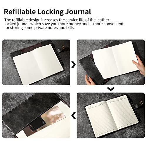 Return Policy Fast Delivery Trusted seller Journal for Men with Lock, Waterproof Locked Journal with Pen 192 Pages Diary for Men and Women Gift, A5 Personal Journal for Men, PU Leather Notebook Journal with Lock, Black Product Description 【HOW TO SET THE CODE LOCK】 You will get a instruction to help you set up password combinations to protect your privacy, no page falling, journal with lock for men is suitable for both travel diary and notebook. If you cannot open the code lock or forgot your password, Please Contact us. 【1000 PASSWORD COMBINATIONS】 The Vintage journal for men with lock has a trace of sense 0-9 Three-digit lock, with 1000 password combinations which can be freely set with your own password to protect your privacy and secrets. 【REFILLABLE EYE PROTECTION PAGES】 Refillable inner core with no fluorescent agent, don't worry to waste beautiful covers and protect your eyes. A5 size: 8.5 *5.7 inches which is bigger than the average locked journal. Lock diary for men has 192 pages(96 sheets) lined pages and we choose luxuriously thicker smooth paper with no ink infiltration. 【WATERPROOF NOTEBOOK WITH A PEN】 The pen is our giveaway for you. The notebook with lock also has a leather pen holder, which is able to hold the pen firmly. You can record your life anytime, anyw. And a ribbon bookmark allow you to find important information more quickly. The A5 PU leather journal for men cover is soft and waterproof. Locked journal is suitable as a nice gift for women and mens, students, family and boys. 【Perfect Gift】 Each diary with lock comes in a nice gift box, if you give the lock journal to boys, friends, family, or colleagues, they will be very happy for sure and they will know you care deeply about them. 【GUARANTEE】 If you have any questions or are not satisfied with our products, please contact us, .If you have any questions about our leather notebook journal, contact us through message, we will reply as soon as possible and give you a satisfied answer. Any messages from you is necessary for our growth. Shipping Returns Payment Shipping Shipping is FREE to all addresses other than APO/PO boxes in the lower 48 states. All our stock ships from US-based warehouses. Shipped via USPS or UPS (depending on location and package weight) Unless stated otherwise, all orders will ship within 24-72 hours of your payment being processed. Check our feedback to see the great reviews of FAST shipping we offer. Returns Seller does not accept returns Payment We currently accept payment via eBay managed payments only. Once payment is cleared, we will dispatch your shipment within 1-3 business days. Please refer to the "Shipping" tab for more information regarding shipping speed to your destination.