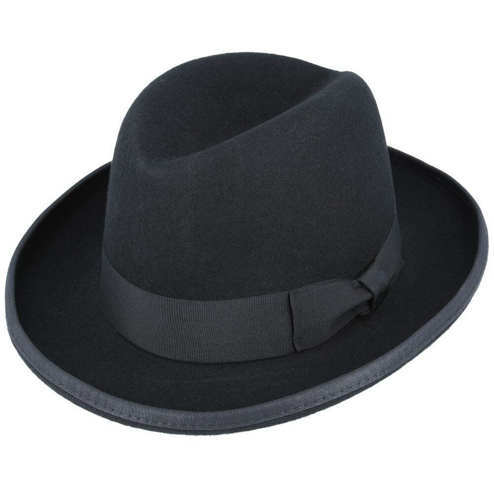 Classic English Wool Churchill Homburg Hat - Black | 100% Wool Felt | Satin Lined | Removable Feather 🎩 Classic Homburg Hat – Timeless Elegance for Men Elevate your style with this premium Homburg Hat , a semi-formal hat crafted from 100% wool felt . Known for its distinguished "gutter crown" and kettle curl brim , the Homburg has been a symbol of sophistication for over a century – famously worn by Edward VII, Winston Churchill, and other style icons . ✔ Material: 100% Wool Felt – durable, breathable, and comfortable. ✔ Lining: Fully satin lined for luxurious comfort. ✔ Details: Grosgrain ribbon band, removable side feather, PVC sweatband. ✔ Design: 12.5cm high crown with single center crease & 6cm wide bound edge brim. ✔ Sizes Available: Small: 55cm (6 7/8) Medium: 57cm (7 1/4) Large: 59cm (7 1/2) X-Large: 61cm (7 3/4) ✨ Why Choose Our Homburg Hat? Perfect for formal occasions, weddings, parties, theater, and vintage styling . A must-have accessory for collectors, retro fashion lovers, and gentlemen’s wardrobes. Combines timeless tradition with modern comfort . 📦 Fast Tracked Delivery – Ships Within 48 Hours! Add a touch of history and sophistication to your wardrobe with this classic black Homburg hat – where tradition meets style.