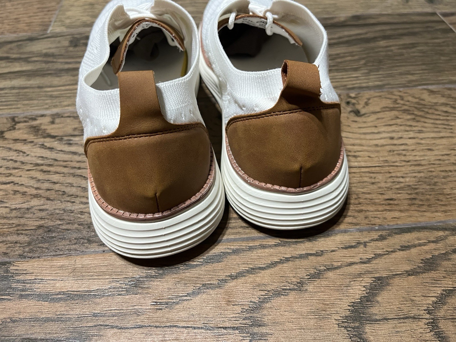 Men’s Dress Casual Sneakers, white with tan leather. VILOCY brand Sz Eur 44/US 11. Very good condition