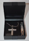 Men's Cubic Zirconia Stainless Steel Cross Necklace & Bracelet Set . Necklace has 26" chain with a cubic zirconia accented cross pendant. Cross pendant measures 2" by 1-1/8". Bracelet is 8-12" with cubic zirconia accents. New in box. Customer satisfaction is my # 1 Priority!! Please contact me if you are not satisfied with any aspect of your purchase before leaving any feedback. JB4