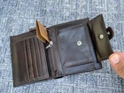 Leather Card Holder Wallet Dark Brown Genuine Leather Men Purse Billfold Box n Bag Handmade Genuine Leather Color: Dark Brown Size 4.75 X 4 inches (closed) 4.75 X 7.75 inches (opened) 11 slots for cards 2 coin pocket, one with zip and one with snap 2 slots for bills 2 slots for photo ID Made in Pakistan Brand new. never used. comes in a box and in a hand bag as shown in the photos.
