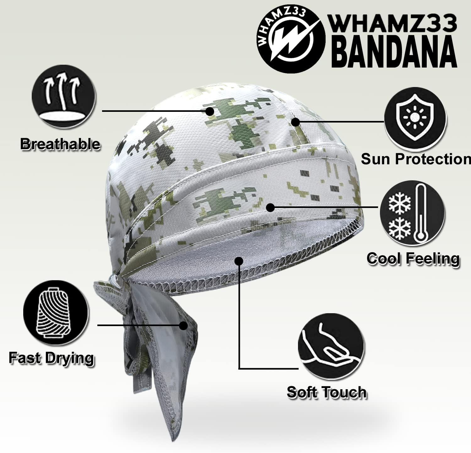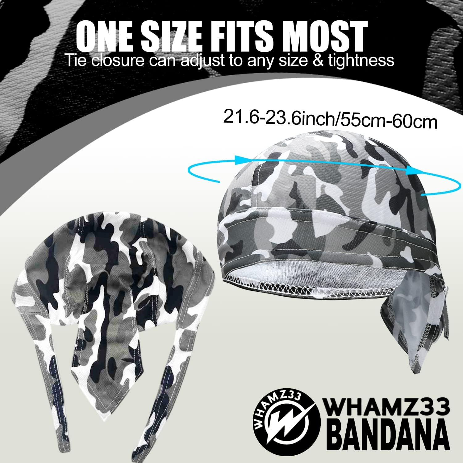 Product Description Doo Rags for Men, Head Wraps Dew Rags Bandana Beanie for Cycling Motorcycle Love spending time outdoors? Then you know it's important to protect your head from skin burning harmful UVA and UVB rays. This head bandana will save your head, neck, and ears. whamz33 brings you the helmet liner skull cap tailor-made for your active lifestyle. Infused with instant cooling properties, our skull cap helps relieve stress from heat. It is lightweight, Enduring and has added ventilation for maximum comfort. Great to use for any helmet sport or even as an everyday wear essential. Our men doo rags are ideal to be worn as skull bandana,motorcycle doo rag skull caps ,cycling helmet liners skull cap,chef skull cap,mens doo rag skull caps ,running bandana hats for men,whatever you use it for ,it can provide you complete hair coverage,and make you cool&unique. Protect you from the strong sun,An essential helmet liner accessory for any sport or outdoor activity. This cap is extremely soft and comfortable. Made with a magical blend of polyester and spandex, you can ride comfortably for hours. It's so lightweight you'll forget you're wearing it. Proving complete hair coverage,these men skull caps will perfectly help you keep the sweat out of your eyes ,protect you from the strong sun shine ,let you enjoy your outdoor activities without sweat issue,the different skull design will keep you cool too . Our skull caps are designed with straps on the backside ,you can tie the straps to fit you in the most comfortable way ,no need to worry about the wind will blow off your cool skull doo rags. Features include: Smooth fit ties securely in the back. Grip Technology keeps it in place during any activity. Dryline fabric absorbs sweat, wicks moisture and dries quickly. Works great under helmets. Will not lose shape, form or stretch out. Stays in place during any activity. Features include: Smooth fit ties securely in the back Grip Technology keeps it in place during any activity Dryline fabric absorbs sweat, wicks moisture and dries quickly Works great under helmets Will not lose shape, form or stretch out. Stays in place during any activity Features include: Smooth fit ties securely in the back Grip Technology keeps it in place during any activity Dryline fabric absorbs sweat, wicks moisture and dries quickly Works great under helmets Will not lose shape, form or stretch out. Stays in place during any activity Features include: Smooth fit ties securely in the back Grip Technology keeps it in place during any activity Dryline fabric absorbs sweat, wicks moisture and dries quickly Works great under helmets Will not lose shape, form or stretch out. Stays in place during any activity