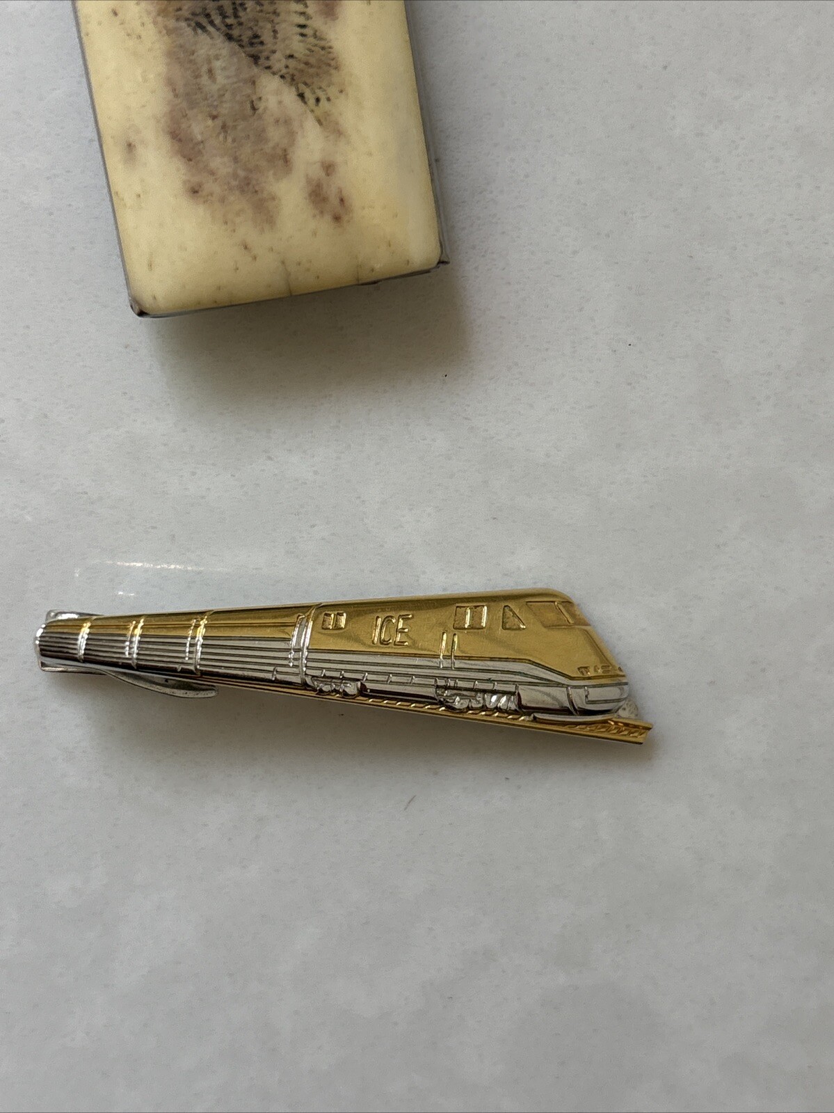 This unique money clip features an eagle design with a file and knife for easy organization. Made in Hong Kong, this vintage piece is crafted from metals resin? materials, making it a stylish addition to any wallet. The train theme in the tie clip adds a touch of playfulness to the clip, making it perfect for those who love unique and quirky accessories. It is suitable for men and is not handmade. As is see photos —— ** worn eagle front Pre-Owned 2 PCS / NOT SET.