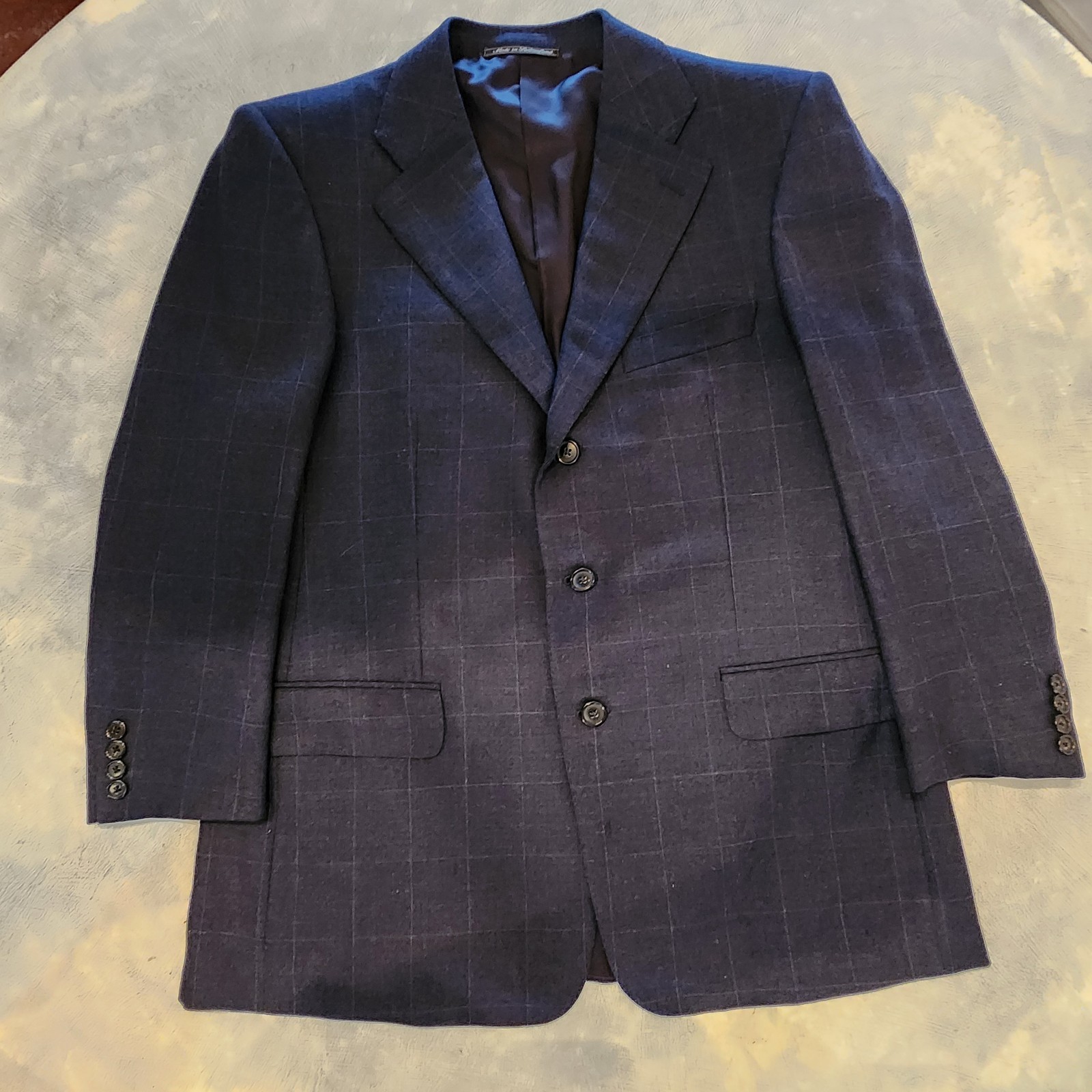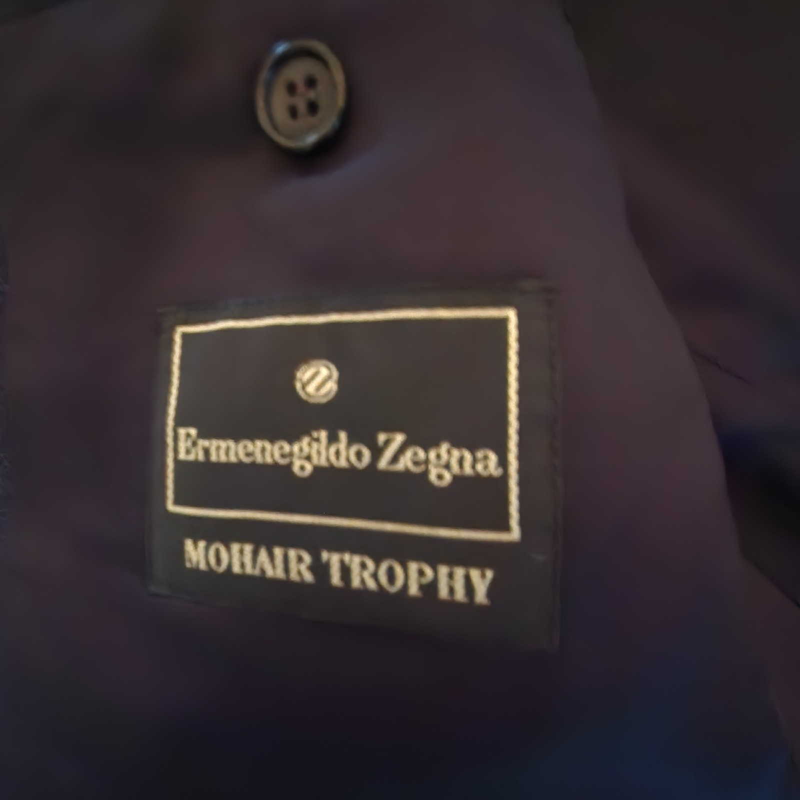 Men's Ermenegildo Zegna Suit Wool & Mohair Switzerland US Size 40 EU 50 Double vent on coat. Size tag is cut from pants. Pants have been hemmed. Pants have 3 inches of material to lengthen pants. If you just want the blazer message me and I will adjust everything.