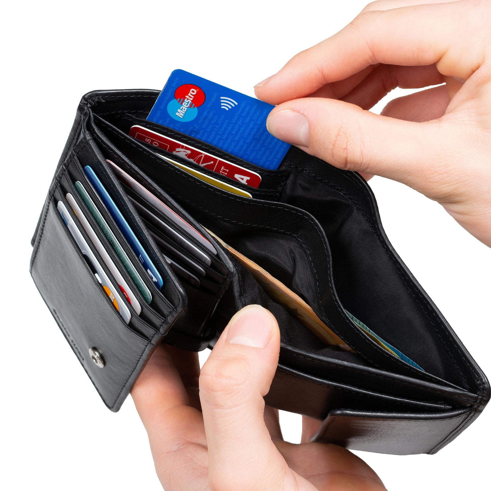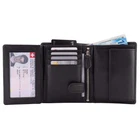 New Design - 100% Genuine Full Size Leather Wallet. Made with full grain napa leather. Presentation Box and Dust Bag - Ships in our elegant Presentation Box ideal for Groomsmen, Birthdays, Anniversaries, Father's Day, Graduation, Christmas and other Special Occasions 12 Month Warranty, The Warranty covers any factory defects as a result from the manufacturing process of the product. Quality Leather and Craftsmanship. Super fine stitching. YKK zipper. Designed in Switzerland. is a Swiss company focusing on useful, practical, long lasting products RFID Blocking Technology for your Safety and Protection. Tested and Approved.for your Safety and Protection. Have peace of mind knowing your data is safe with your wallet. Size: 4 3/4" H x 3 3/4" W x 1" D or 122mm H x 95mm W x 25mm D when closed. Large, Full Size Bifold Single Flip ID Leather Wallet, Coin Compartment, Center YKK Zipper, Vertical Slots, Black Nappa, Item # 1809N-BK-2020