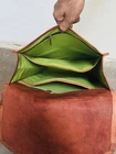 Looks nothing like the ordered product complete different color, eBay says us seller but was shipped from India , purchased purposely from this seller because they had the rustic looking bag advertised and a generic brown turd showed up