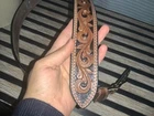 This leather belt for men is made of 100% genuine leather and handcrafted by an artisan. It features a Western style with tasseled, studded, and embroidered accents. The belt is adjustable and has a buckle made of nickel. It has a dusty, rocky look with a brown color and is designed for a regular size fit.