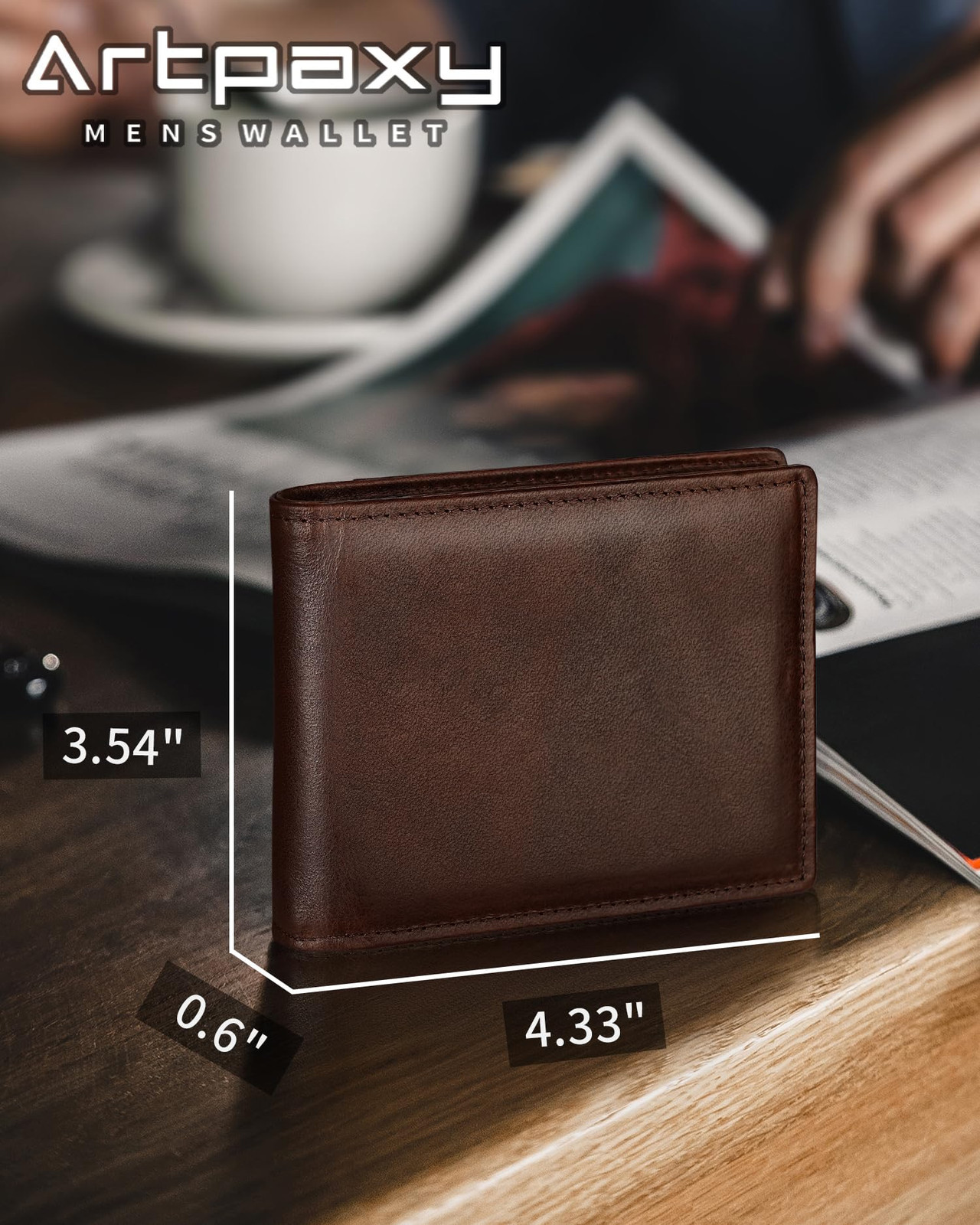 GENUINE LEATHER — This men's wallet is made of high-quality top-grain leather, which is water- and abrasion-resistant. The leather will become softer with use, making it easier to insert and remove cards, and ages beautifully with time PRACTICAL DESIGN - This bifold wallet has 11 card slots, 2 cash pockets, and 2 ID windows for easy sorting of your money, cards, and ID. With plenty of storage and simple access, this bifold wallet was crafted for efficiency and extra capacity RFID BLOCKING - RFID wallets block unauthorized device scans, protecting your private information and credit cards. Due to the different frequencies of shielding, the wallet will not prevent you from using access cards, etc., making life easier while keeping your money and information safe EXCELLENT GIFT IDEA - Brighten up someone’s day! Our bifold wallets for men have a timeless look and come packaged in a handsome gift box, which makes it the best billfold for men. Make this wallet a great gift for Father's Day, Valentine's Day, Anniversaries, Birthdays, Christmas and more Thoughtful Service - All products are high quality. If you are not satisfied with your purchase, please let us know and we will resolve the issue asap