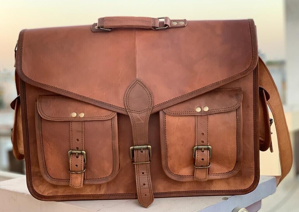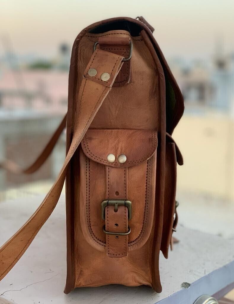 HANDMADE BRIEFCASE SATCHEL BAG. Handmade Goat Leather Satchel Laptop Shoulder Bag. Each bag is individually made using goat leather by experienced crafts people. The bag gets better and better with the time as the leather softens and deep-ens in color. 100% Genuine leather Products | Lining 100% Canvas I (MADE IN INDIA) Buy with confident 30 Days Return Policy Description Handmade Goat Leather Satchel Laptop Shoulder Bag QUALITY LEATHER BAG Each bag is individually made using goat leather by experienced crafts people .The bag gets better and better with the time as the leather softens and deep-ens in color. The tonality color of each bag might vary in accordance with the low and high temperatures from the heart of The Thar desert.The leather does not receive any chemical treatment. On the bags a special vegetable oil is applied to give more tonality to the dominant brown (light and dark) color of the bag also making it more resistant to the water.Each bag has its charm and style and a very special earthy smell that will assure you it’s real leather.Its lightness, flexibility and durability will not make you regret your purchase. HANDMADE BRIEFCASE SATCHEL BAG FOR STUDENTS, OFFICE WORKERS AND COMMON PEOPLE Features Green canvas fabric Size:-13 x 17 x 6'' XX Large Internal 2 compartments and 2 zipper 2 small pockets on both side of bag Back side 1 zipper Front 2 small pockets Thick adjustable strip (See the picture for more detail) Strong, light-weight goat leather, tanned without the use of chemicals Leather softens and darkens with use Color and texture of the leather varies Natural real leather smell, just like a luxury car or lounge suite Solid brass buckles and fixtures - will last for years Has a wonderful natural look, and feel Each bag is uniquely individual due to slight color and marking variations on natural leather Brand New Handmade Leather Bag without tag Payment Using Paypal is the simplest and easiest way to pay, and is the way we prefer, but if you have a reason that you don't want to use Paypal that's OK, we will accept credit card payments and bank deposits, please contact us to arrange these after purchasing. we know that you will want to get your goods sent quickly so please remember to make your payment quickly after purchase, and we will dispatch within one business day after you have made your payment. if you need a bit of time to make your payment, that's also ok, please contact us to advise how long you need, we are happy to hold your goods for up to week before you pay. if you are purchasing from overseas,please be aware that we can only accept Paypal. Shipping Combine shipping (Heavy discounts) available Tracking details are availableExpress delivery (3 days) available on minimal extra charges, please write to us Shipping Partners - DHL, FedEx, UPS etc and like other International Courier Service providors onlyShipping may be influenced by holidays, public events and/or any othe uncertainties. We can not guarantee the exact arrival time.Please understand we could not control how the customs work at destination.If you are very care about the seemingly shipping time, please provide your contact numbers. We ensure to keep it confidential. Terms Of Sale Returns accepted Please write to us before returning the item Buyer should contact us within 20 days of receiving the item Refund will be given in refund or replacement on buyer's choice. Return shipping will be paid by the buyer Item must be returned in its original condition Please write to us for any clarification on RETURN POLICY About Us Namaste........ We are manufacturer and wholesaler of leather goods and specialized in Office Briefcases, Office Bag, College School bags, Travel Bag, Handbags, Purses, Wallets, leather journals and diaries and many more. We use quality leather of Goats and Camel. We offers customize designing and wholesale prices for bulk order. For more details, please write to us. Please visit our store and have a look of our other items If anything unanswered, please do write to us. Happy Shopping!! Contact Us Please contact us via eBay with any questions you have about our products. We normally respond to any questions within one or two working days. Feedback & DSR If there is any problem with product or delivery, please contact us BEFORE leaving the feedback and below 5 star rating. 100% customer satisfaction is our goal. Your 5 Star rating will help us to reduce cost in your next purchase supreme