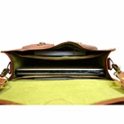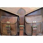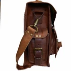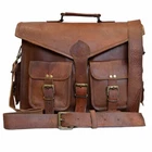 Item Description:- Material- Real Goat hide ( sustained ) Size- 11"(L), 15"(W), 4"(D) 2 Front pockets, handle on top. 2 SIDE POCKETS Total 5 compartments inside with green color strong canvas lining. Adjustable shoulder broad strap. Real Brass metal accessories used in this Bag.