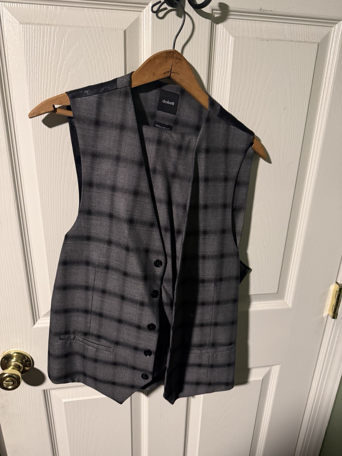 This Men's Gray/Black Windowpane 3 Piece 36R Suit by Dobell is a sophisticated and stylish choice for formal and business occasions. The suit features a classic four-button sleeve button style, peak lapel, and inner pockets, with a slim fit and straight leg style. Made with high-quality polyester material, this handmade suit is designed for the winter, fall, and spring seasons. Trousers include suspender buttons and a plain hem. The flat front and double-vented jacket add to the overall timeless appeal of this formal attire. Suitable for a Regular fit, this suit is perfect for the modern gentleman looking to make a statement.