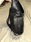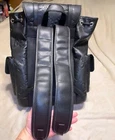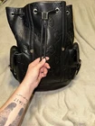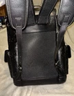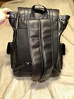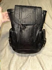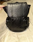 This men's Gucci backpack is the perfect addition to any designer collection. With a black leather exterior and the iconic Gucci GG pattern, this backpack is both stylish and functional. The bag features a magnetic and push lock closure, as well as adjustable shoulder straps for a comfortable fit. The backpack has a medium size, measuring 13 inches in width, 16 inches in height, and 4 inches in depth. It also has inner pockets for added organization. Made in China with high-quality materials, this backpack is a must-have for any fashion-forward man. black leather grained texture Jumbo GG canvas debossed monogram pattern single flat top handle adjustable shoulder straps two front flap pockets main compartment internal padded laptop pocket silver-tone hardware foldover top with magnetic fastening