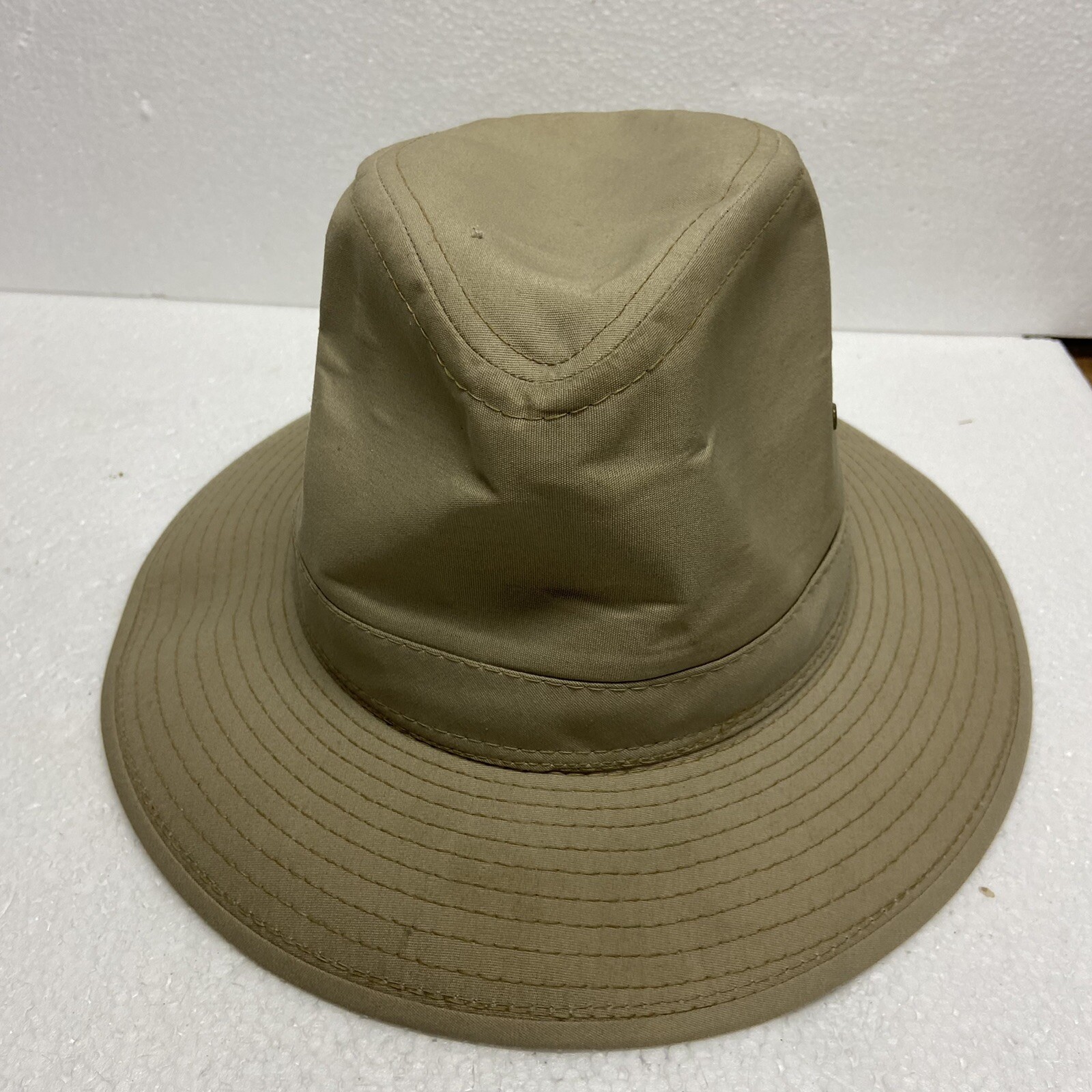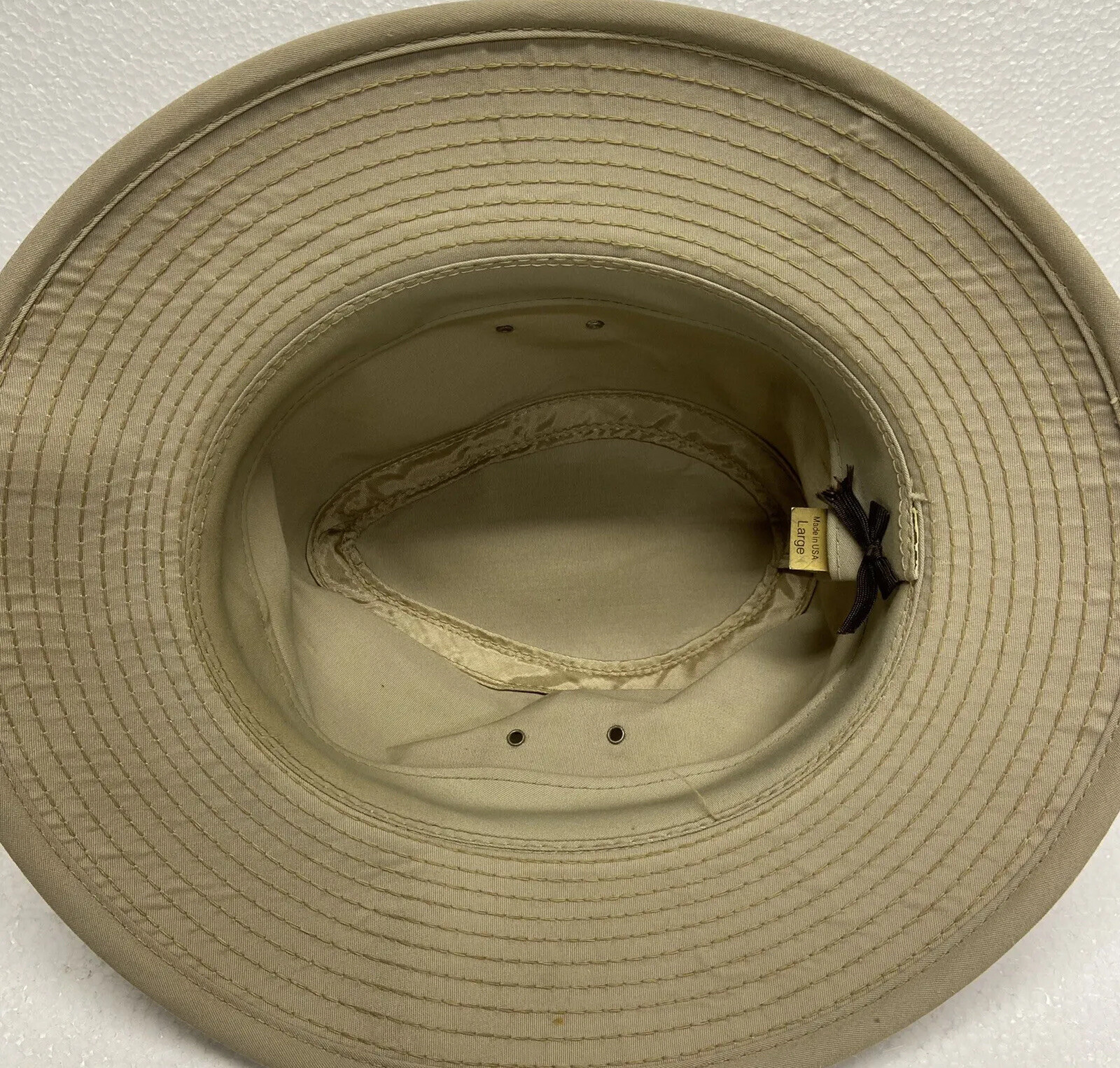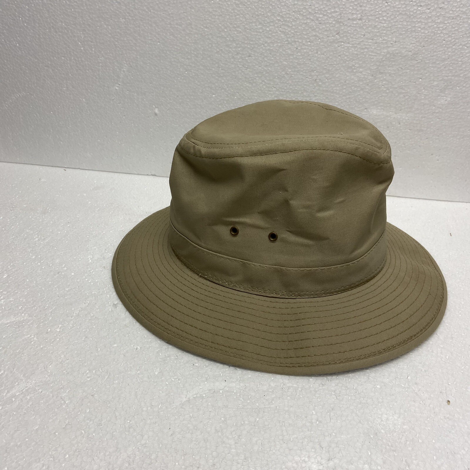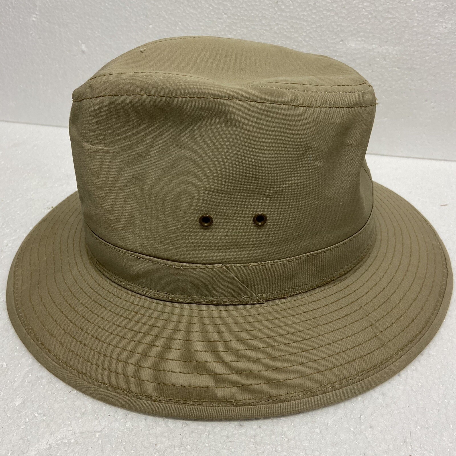 Bucket Hat Men’s Khaki Large fisherman Hiker. Air holes Brim 2.5”. Height from brim 4” No flaws