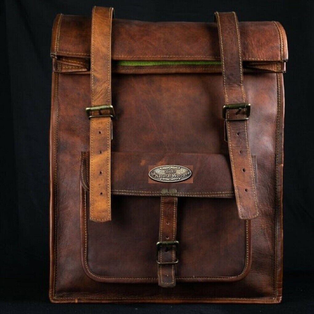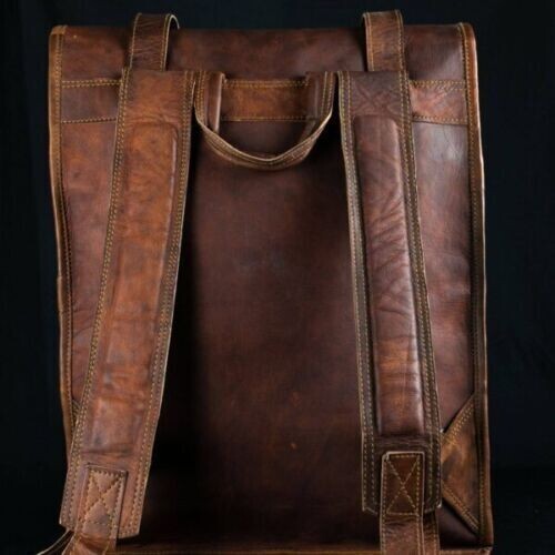 Description 100% authentic, naturally tanned GOAT leather Extremely soft in touch Absolute handmade Retro look Leather Backpack with durable stitching and robust canvas lining Size (In inches) - 14"(L), 17"(Rolled) -(H)- 22"(Open), 4(W) 1 front pocket Inside - 1 compartments and 2 pockets Interiors adequately waxed with resilient canvas lining Adequately long and adjustable shoulder straps Hardware made of authentic iron.. Payment Policy We Accept Payments Through Paypal Shipping Combine shipping (Heavy discounts) available Same day dispatch (99.9%) Tracking information for shipping are available 3 days’ Express delivery available on nominal additional charges (On request) Shipping Partners - DHL, FedEx, UPS etc and like other International Courier Service providers only Shipment/delivery sometimes might get affected by holidays, public events and/or some other uncertain events. We can’t promise the precise delivery time. Please understand that sometimes the customs at the arriving destination are not under our control. For buyers looking for outwardly shipping time- please provide us your contact number. We guarantee to keep it confidential. Return Policy Returns are duly accepted Please write to us before returning the article In order to return an item, buyer must contact us within 14 days of receiving it On buyer's choice, we can refund or even replace the item too. Return shipping charges will be paid by the buyer Item must be returned in its original condition For any clarification on ‘Return Policy’, feel free to write to us. Please Note Every leather item has distinctive color tone, which may deviate a little from given pictures and also differ from item to item. Pure leather may have a few scars/cuts/marks on it. Authentic leather may stink a little when it is brand new, but odor will go away with using frequently. To get rid of the smell, put it in fresh air for a while. There might be some local custom charges which are unfamiliar to us, and are the liability of the client of the destination country. Please guide us on custom procedures followed in your native country, and we will be more than pleased to pursue your guidelines. Brazil - Please make available CPF details and contact numbers, as it is a MUST. About us We are manufacturer and wholesaler of leather products and specialize in Office Briefcases, Office Bags, College/School bags, Travel Bags, Handbags, Purses, Wallets, leather journals and diaries, and many more. We use high quality natural leather of Goats and Buffaloes. We also offer customized designing as per client’s requirement. We even provide wholesale prices for bulk orders. For more details, please click on "ASK A SELLER QUESTION " THIS IS A COMFORTABLE BAG AND WE KNOW YOU WILL LOVE IT Check Out Other Amazing Leather Products on Our Store!! If anything unanswered, please do write to us.
