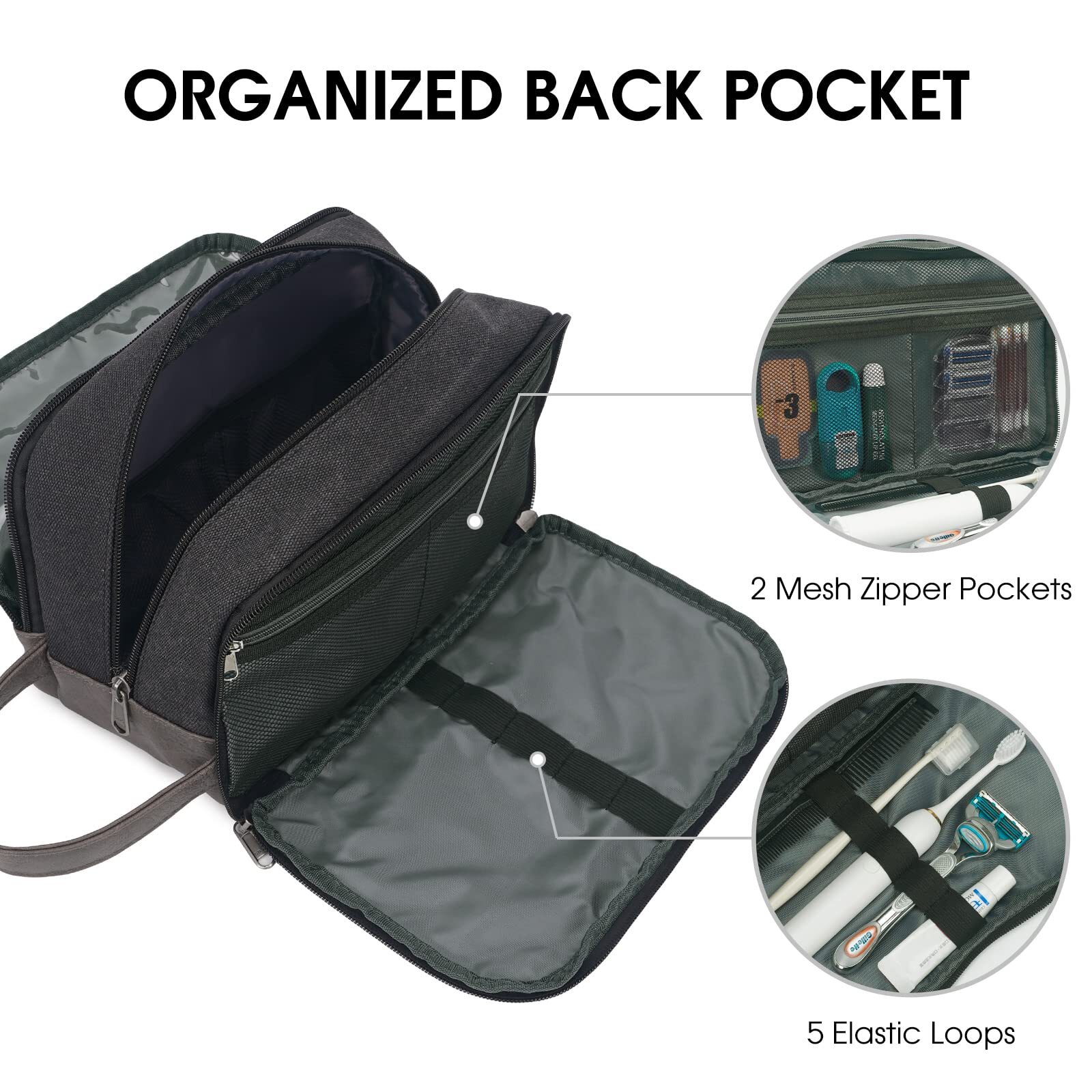 Travel Toiletry Bag for Men Large Toiletries Shaving Bag Water Resistant Hanging Dopp Kit Travel Accessories Bag for Women Men (Black) Dry and Wet Separation: The travel toiletry bag features a specialized pocket to keep wet items like toiletries and towels separate from dry ones, ensuring organized and mess-free packing. Spacious Main Compartment: Measuring 9.85.16.3 inches, this toiletry bag offers ample space for all your travel essentials. It comfortably accommodates full-sized items like toothpaste, face wash, mouthwash, lotion, shampoo, and razors. The bag includes five internal mesh pockets for upright storage of bottles and other items. Full-Access Design: The full-open design allows for easy access to all your items. It includes five elastic straps perfect for securing toothbrushes, razors, toothpaste, and electric nail clippers. Additionally, two mesh zipper pockets provide storage for small items such as cotton swabs, masks, and power cords. Premium Quality: Made from durable, water-resistant canvas and PU leather, this toiletry bag is built to last. The sturdy construction ensures the bag maintains its shape, while the leather handle makes it easy to carry or hang. The soft fabric adds an extra layer of comfort during travel. Versatile and Multi-Functional: Ideal for short trips, business travel, or everyday use, this bag functions as a toiletry bag, shaving kit, makeup bag, and travel kit. It's a thoughtful gift for family, friends, or colleagues, combining practicality with style. Shipping We ship within Three business days of payment, usually sooner. Some delivery times are longer than normal due to increased demand. We use a selection of shipping services such as UPS, FedEx, USPS etc. We only ship to the lower 48 states, no APO/FPO addresses or PO Boxes allowed. Local pickups and combined shipping options are not provided at this time. Return You can return a product for up to 30 days from the date you purchased it. Any product you return must be in the same condition you received it and in the original packaging. Please keep the receipt. Payment We accept payment by any of the following methods: PayPal Please pay as soon as possible after winning an auction, as that will allow us to post your item to you sooner! Feedback Customer satisfaction is very important to us. If you have any problem with your order, please contact us and we will do our best to make you satisfied. Contact Us If you have any queries, please contact us via ebay. We usually respond within 24 hours on weekdays. Thank you for shopping at our store.