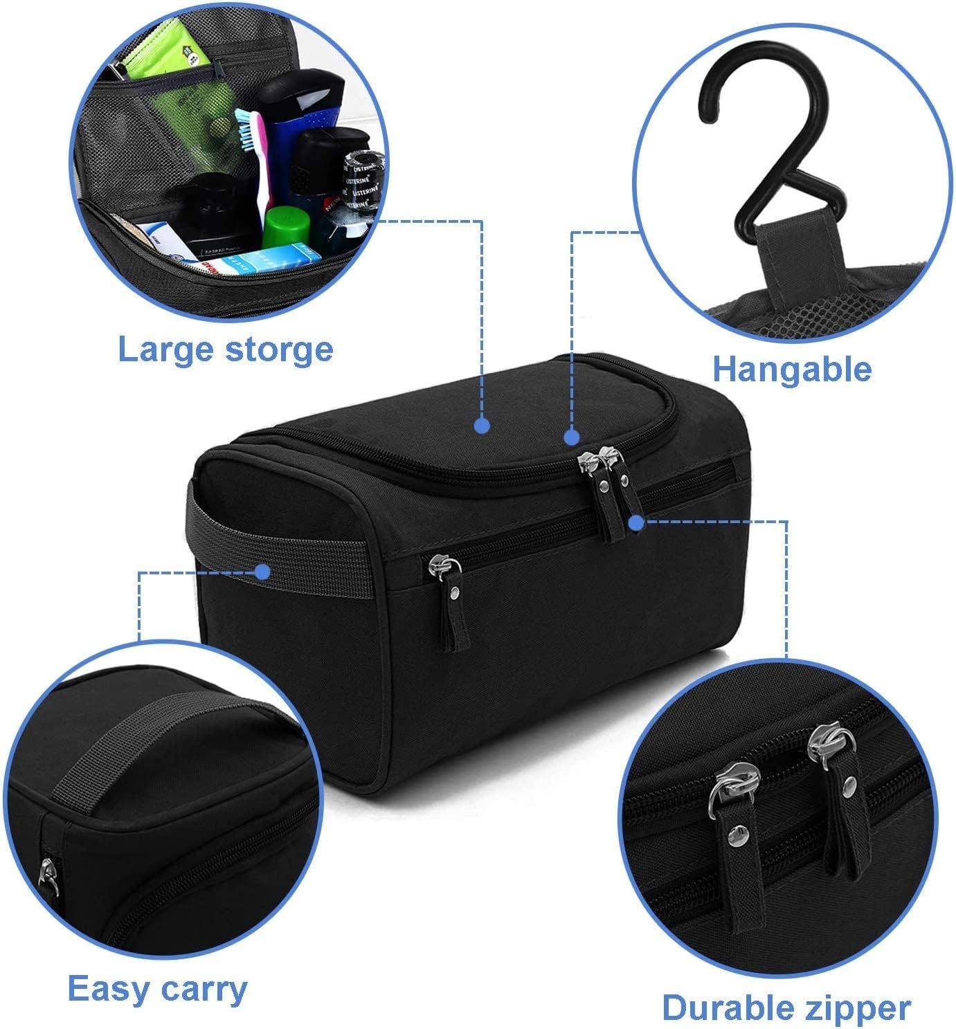 ✔Practical Size: This toiletry bag has a practical height of 15 cm, which could easily fit electric toothbrush, shaving kit, shampoo, conditioner or other travel size toiletries. It measures 25 × 14 × 15cm/9.84 x 5.51 x 5.91inch. ✔Super Quality: The cosmetic bag is made of high quality nylon fabric materials, lightweight, waterproof, strong wear resistance and high elasticity. Weighing only 150g. Pack it flat design makes it not to take up too much room in your suitcase. ✔ Hangable Wash Bag: The travel wash bag have a solid plastic hook, allowing you to simply hang your travel cosmetic bag hanging shower or towel rack, keep it away from wet floors or surfaces. The external zipper mezzanine can store your phone,card for your convenient use. ✔Made for Travel: Between the outside and the inner of the bag is filling with foam,shock resistant and provide a better protect for make up object. In the outside of the washbags it was a durable handle,so you can easily carry the make up organizer to anywhere you want. ✔Widely Applications: This toiletry make up bag also has a water-resistant and anti-bacterial inner lining, which will protect your personal items from the penetration of moisture or bacterial. Compact, sturdy, portable, which makes it a great choice for business trips, travel, gym, camping, home use and more. Product Description Durable Double Zipper Premium double zippers ,make it is easy to zip up.And with fine seam ensure a really long time use, no need to worry any ripping or break during trips. Hanging Hook There is a hanging hook when open it, which allows for securely hanging the toiletry kit from a shower or towel rack, making it easy to view and access stored contents. Convenient Grab Handle Top handle for quick grab is very easy and convenient to carry, you can take it anywhere with the portable handle. Make it convenient to carry wiht you during the travel. Mesh Pocket Fine mesh pockets for small items storage, making it easy to view and access stored contents. it is easy to get what you want without digging out. Special features of Ondaring wash bag High quality waterproof fabric and good workmanship ensure a long durable life time. Dry and wet separation, want soiling other items. Hangable design , keep the wash bag away from wet. External zipper mezzanine can store your phone,card or some other cosmetics for your convenient use. Large Capacity & Hangable Large Capacity Size: 24*14*14cm/9.5*5.5*5.5in, Roomy enough to hold your basic travel toiletries and cosmetics. Large zipper opening so you can easily find the object you want,convenient for men women ladies gents girls boys daily daily use. Hangable Design The travel wash bag have a solid plastic hook, allowing you to simply hang your travel cosmetic bag hanging shower or towel rack, keep it away from wet floors or surfaces.
