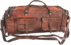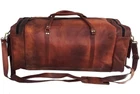 Green canvas fabric Internal 1 large compartment 2 big pockets on front of the bag 2 outer side pocket Thick adjustable strip SIZE: 30" (long) x 11" (wide) x 10" (deep) (See the picture for more detail) Strong, light-weight goat leather, tanned without the use of chemicals Leather softens and darkens with use Color and texture of the leather varies Natural real leather smell, just like a luxury car or lounge suite Solid brass buckles and fixtures - will last for years Has a wonderful natural look, and feel Each bag is uniquely individual due to slight color and marking variations on natural leather Brand New Handmade Leather Bag without tag.
