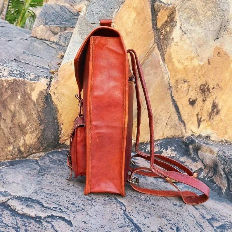 Leather Backpack Rucksack Sling Satchel messenger bag 2 in 1 purpose VINTAGE HANDMADE GOAT LEATHER MESSENGER BAGS SATCHEL BUSINESS BAG ADJUSTABLE SHOULDER STRAP 100% genuine goat leather messenger bag with a durable inner lining made of canvas. Designed to carry mini laptops, tab, documents or other personal belongings, etc. A genuine hand made product using chemical/dye-free leather. Natural oils and light have been used to obtain the style of the leather - chemical free! This bag features a wonderful unique and vintage look, designed to carry mini laptops, tab, documents, personal belongings etc. Perfect for the office, school or as a gift! Specifications: Made from 100% genuine, strong, lightweight, durable goat leather, tanned without the use of chemicals Adjustable shoulder strap, roll close backpack with small front pocket. 2 big inner compartment for carrying files, mini laptop's, tab's etc with padding. 2 zipper compartments for important documents/paperwork etc. Inner canvas lining Vintage leather wash Leather softens and darkens with use Handmade in India by experienced crafts people Size:-12 x 16 x 5'' X large Please provide your telephone number as well, so that the post office can contact you when your item arrives, or the item will be sent back to us. We will not be able to resend the item in that case so please make sure to provide your contact number. Please do provide your full address and phone number by eBay message immediately after making the payment for easy delivery. We normally ship within 1 to 2 days. We will offer the tracking number you can track it during the whole shipping process after shipment please check your tracking number after 3 to 4 days and please contact us in any query regarding your package as soonest We only accept Pay pal Payment is to be completed within 3 days of the purchase. Please contact us if you can't make the payment promptly. Otherwise, we will resume the right to re-list the item and the unpaid item report will be made correspondingly. RETURN POLICY • In case of return of the goods, buyer has to borne the shipping charges. • Customs duties and other duties levies in destination country are responsibility of the customer. • We will exchange the item if returned to us within 14 days of original packing. • The item should not be used. • No alterations Must be Done to Item. Otherwise We won't take it Back • Buyer Must Inform within Two days after Getting the product about any Issues with the Item. TERMS & CONDITIONS Customers are require to provide full & accurate information at the time of order. No warranty. Dry cleaning only. We use standard shipping carriers for national & international shipping. Accessories & Stitching Pieces shown in the image are just for photography purpose. There may be color variation due to difference in resolution of the photo & the actual color. Please clarify all your doubts before buying. In case the item is out of stock your entire amount will be refunded via the same way the payment was made. Offer price is for per piece. About Us We manufacture ethically designed leather bags of great quality. The most important thing, these bags are not factory made, all of our bags are locally hand crafted in countries. We offers customized designing and wholesale prices for bulk order. We welcomes you to come and visit our manufacturing unit. For more details, please write to us. Feedback We are New Seller on e-bay, So Leave your Positive Feedback. As it really Matters to us. Give us a Chance to Serve You with high-quality Leather Products at reasonable price • Please do not leave a negative feedback as a way to communicate. Any rating given to a seller can neither be changed nor modified. So better communicate for faster resolution to any disputes. • If you have any concerns regarding your purchase, please contact us via phone or mail, we assure you that a satisfactory resolution will be reached. • Please help us maintain a 5 Star DSR rating in all 4 rating categories, if you feel otherwise, please let us know how we can score a perfect rating from you before you rate us.