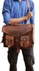 100% genuine goat leather messenger bag with a durable inner lining made of canvas. Designed to carry mini laptops, tab, documents or other personal belonging. A genuine hand made product using chemical/dye-free leather. Natural oils and light have been used to obtain the style of the leather - chemical free! This bag features a wonderful unique and vintage look, designed to carry mini laptops, tab, documents, personal belongings. Perfect for the office, school or as a gift! Size :- 11 X 15 X 4 inch Specifications: Made from 100% genuine, strong, lightweight, durable goat leather, tanned without the use of chemicals Adjustable shoulder strap, half flap bag with strap lock & small front pocket. 3 big inner compartment for carrying tablet, smart phone's, tab's etc. 2 zipper compartments for important documents/paperwork etc. 2 small pocket in front & 2 small pocket in side. Inner canvas lining Vintage leather wash Leather softens and darkens with use Handmade in India by experienced crafts people.