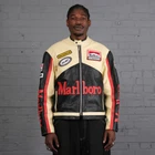 Men's Marlboro Racing Multicolor Motorcycle Biker Genuine Cowhide Leather Jacket Product Description: Turn heads and ride with confidence in the Men’s Marlboro Racing Multicolor Leather Jacket — a bold tribute to classic motorsport culture. Featuring a striking mix of red, white, yellow, and black , this jacket is inspired by vintage racing designs and the iconic Marlboro branding that defined an era of speed and rebellion. Made from high-quality genuine cowhide leather , this jacket is built to withstand the road while offering a stylish, race-ready look. The multicolor panel design , coupled with embroidered and printed racing logos, makes it a standout piece for riders who want to make a strong impression on and off the bike. Features: Constructed from 100% genuine cowhide leather (1.2mm – 1.3mm thick) Iconic Marlboro racing logos and detailing for authentic style Bold multicolor design : red, white, yellow & black for a true racing aesthetic Durable YKK front zipper , zippered cuffs, and waist adjustment straps Polyester inner lining for all-day comfort and breathability Optional removable CE armor padding at shoulders, elbows, and back Functional inner and outer pockets for convenience Suitable for motorcycling, casual wear, or motorsport events Perfect for riders and collectors alike, this jacket delivers a vintage racing vibe with modern craftsmanship. Make every ride a statement.