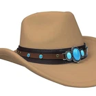 Men's Modern Fedora Pinch Crown Rolled Cowboy Hat One Size Camel | Turquoise