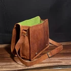 Newest Men's Leather Business Messenger Laptop Shoulder Briefcase office bag This product data sheet is originally written in English. HANDMADE BRIEFCASE SATCHEL BAG FOR STUDENTS, OFFICE WORKERS AND COMMON PEOPLE Features Size:-11x 15x 4'' inch large Green canvas fabric Internal 2 compartments and 2 zipper 1 small pockets on front of the bag Back side 1 zipper Thick adjustable strip (See the picture for more detail) Strong, light-weight goat leather, tanned without the use of chemicals Leather softens and darkens with use Color and texture of the leather varies Natural real leather smell, just like a luxury car or lounge suite Solid brass buckles and fixtures - will last for years Has a wonderful natural look, and feel Each bag is uniquely individual due to slight color and marking variations on natural leather Brand New Handmade Leather Bag without tag