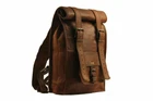 Material- Real Goat hide ( sustained ) Size-18"(L), 14"(W) Made from 100% Genuine, Strong, lightweight, durable goat leather, tanned without the use of chemicals Adjustable back shoulder straps Big main compartments for clothing /travel and sports gear etc. 1 big pocket in front 18" inch in size, perfectly suited for a carry all or as an overnight backpack bag Inside green canvas
