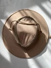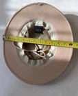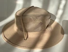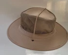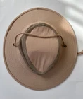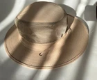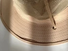 Men's Summer Hat Sun Hat Boonie Hat, Beige, Mesh sides, Adjustable Chin Strap Used once, washed/clean. Please note there is a manufacturing defect where the fabric sticks out from the seam, shown in zoomed photo. Also the top has a bend/fold line, please see all photos for condition. Happy to answer any questions. Many other items available! Check out the full inventory!