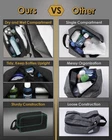 Tacticism Water-Resistant and Large Capacity Toiletry Bag for Men Important Features: 1.Dry and Wet Separation The water proof small main compartment of this mens travel bag toiletry can storage something cannot dry instantly. This travel toiletry bag for men comes handy when you need to separate the dry and wet items. 2.Large Capacity Measuring 10 x 4.7 x 5.8 inches, this toiletry bag easily store all your daily essentials- toiletries, shampoo, shower gel, shaving supplies, electric toothbrush, deodorant. 3.Well-organized Compartments This travel bag has dual main comparments. Inside the large compartment, 2 mesh pockets for storing small bottles, 3 elastic loops for securing the items in their own place. The front pocket provides an easy access to the items you might frequently use. 4.Long-lasting Construction Made of 900D water-repellent fabric, this men toiletry bag is built to last and is easy to clean. 5.Versatile Wash Bag This mens travel toiletry bag is perfect for various occasions: travel, camping, roadtrip, gym, accessories storage, medicine storage. Separate Multiple Pockets: This toiletry bag has dry and wet compartments; The large main compartment keeps dry items; The small waterproof pocket is perfect for storing wet towels and toothbrushes; 2 interior mesh pockets and 3 interior elastic loops keep bottles stand upright and beautifully organized Large Capacity: Dimension: 10 x 4.7 x 5.8 inches; This travel toiletry bag is big enough to hold your essentials from shower gel, face wash, toothbrush, floss, and mouth wash to razor; Wide opening of dopp kit shaving bag makes everything easy to access Sturdy Material: This mens toiletry bag is made of 900D water-resistant fabric for long-wearing durability and easy cleaning; Rectangular shape and long-lasting construction allow it to sit upright Practical Designs: This mens travel bag toiletry features a convenient side carrying handle; The MOLLE design of the front pocket lets you attach small pouches, water bottle pouches, and accessories Multipurpose: Tactical-looking on the outside, this tactical toiletry bag is lightweight and versatile; This toiletries bag is suitable for travel, camping, gym, tools storage, medicine storage