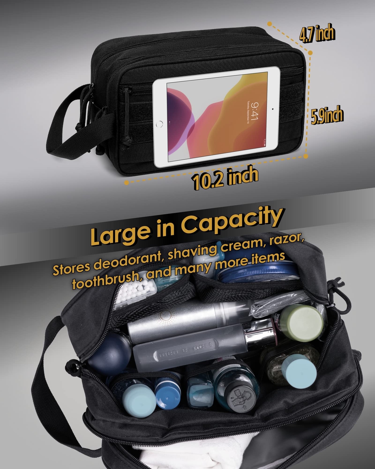 This toiletry bag is a game-changer for travel! The smart dry/wet separation keeps everything organized—no more soggy toothbrushes or leaking bottles. The Molle straps make it easy to attach, and the water-resistant material is a lifesaver. Plenty of pockets keep all my essentials secure, and the sturdy build feels premium. Perfect for men and women who want a durable, well-designed bag that holds everything without the mess. Highly recommend for frequent travelers!