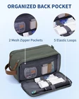 Whether you're heading out for a business trip, weekend getaway, or gym session, this toiletry bag keeps your essentials clean, sorted, and ready to go. The dedicated wet pocket separates damp towels or used toiletries items from dry gear—so your packing stays clean and stress-free. Inside, you'll find a spacious main compartment designed for travel-sized bottles, with upright mesh pockets and elastic loops to keep everything in place. The dual-zipper system lets you open the bag wide for fast access, and a flat-open back panel provides extra storage for small items like floss picks, cotton swabs, or toothbrush heads. Crafted from water-resistant canvas and finished with a sturdy leather handle, it’s easy to carry or hang in a hotel bathroom. Thoughtfully built for daily use, short trips, or business travel—and a smart Father’s Day idea. 【Separate the Damp from the Dry】: Features a dedicated wet pocket to separate damp items like towels or used toiletries from dry essentials. Perfect for keeping everything clean and organized during travel. 【Stay Organized on the Go】: Available in two sizes, the Medium (9.4''L x 5.9''H x 5.5''W ) and Large (11.5''L x 6.3''H x 6.5''W ) toiletry bags fit all your travel essentials. The Medium size is perfect for individual use, while the Large size offers ample space to hold toiletries for the whole family. The mesh pockets keep bottles upright, and two elastic loops in the lid help secure items like toothbrushes or razors. 【Dual Zippers for Faster Access】: Pull the side tabs to open the bag wide, allowing full visibility and access to the main compartment. Easily pack or grab your essentials without digging or fumbling. 【Smart Layout in the Back】: Opens flat to reveal two mesh zipper pouches for small items like floss picks, cotton swabs. Five elastic loops secure slim items such as toothbrushes, toothpaste tubes, or electric brush heads for tidy, grab-and-go access. 【Built for Every Scenario】: Made from water-resistant canvas with a sturdy leather handle for easy carrying or hanging. Perfect for business trips, weekend travel, or daily use—and a smart Father’s Day idea.