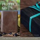 HIGH-QUALITY&DURABLE : Crafted from premium leather and built to last, this wallet is made to withstand daily wear and tear. The sturdy construction and fine attention to detail ensure that it will remain a reliable accessory for years to come. SECURE RFID BLOCKING : Keep your credit card and ID safety. Every card slot in our rfid wallet for men is equipped with RFID blocking lining keeping your personal and financial info safe from unauthorized scans. FUNCTUONAL & SLIM : REWINA Trifold wallet is very useful and functional with 6 cards - 1 ID slot. It meets all your needs with its very large cash compartment. 100% GENUINE LEATHER & HIGH DURABILITY : We use the best material to provide the best experience in REWINA trifold wallets.Our mens wallets are designed to be extremely durable yet stylish..Our high-quality leather wallet is well-known for its softness and its ability to age beautifully over time. DESIGN : With its unique magnet design, it does not bulge and provides perfect closure. It doesn't matter whether it's front pocket, shirt pocket or back pocket, it won't bother you. GREAT GIFT FOR MEN : This wallet is suitable for all men for all ages ,whether it's business or leisure, can demonstrating the charm of any occasions. Plus the advanced and elegant gift box , make it a perfect gift to someone special. Product Description The Magnets Used Are Covered With Special Lining, Protecting Your Cards And IDs. You can use it safely. Whether in everyday use or on the go, it's designed to meet all your needs. It does not matter whether it is a front pocket, shirt pocket or back pocket, it does not bother you. Ergonomically designed, this trifold wallet allows easy access to your cards and bills. . Every REWINA wallet is equipped with RFID blocking technology. Stop thieves from accessing your private information! Our RFID wallets for men are lined with technology that blocks radio-frequency scanners, effectively protecting your personal and financial information. Gifts for Men-Mens Gifts for Christmas-Gifts for Husband TIMELESS DESIGN Slim, Stylish & Great Design Magnificent magnets ensure perfect closure,this style offers a refined take on the classic tri fold wallet for men, with a slimmer front-pocket friendly design. Even when its capacity is fully loaded, it is very thin compared to its peers..... 100% PREMIUM GENUINE CRAZY HORSE LEATHER Like you, leather is strong, durable, and here to weather whatever comes its way. Made from high quality genuine Crazy Horse leather treated with vegetable oil. Crazy Horse leather is durable, strong and gives a unique look and feel that combines luxury, antique and vintage look.