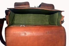 100% genuine goat leather messenger bag with a durable inner lining made of canvas. Designed to carry mini laptops, tab, documents or other personal belonging. A genuine hand made product using chemical/dye-free leather. Natural oils and light have been used to obtain the style of the leather - chemical free! This bag features a wonderful unique and vintage look, designed to carry mini laptops, tab, documents, personal belongings. Perfect for the office, school or as a gift! Specifications: Made from 100% genuine, strong, lightweight, durable goat leather, tanned without the use of chemicals SIZE: 12" x 16" x 5" Adjustable shoulder strap, half flap bag with strap lock & small front pocket. 3 big inner compartment for carrying tablet, smart phone's, tab's etc. 2 zipper compartments for important documents/paperwork etc. 2 small pocket in front & 2 small pocket in side. Inner canvas lining Vintage leather wash Leather softens and darkens with use Handmade in India by experienced crafts people