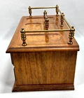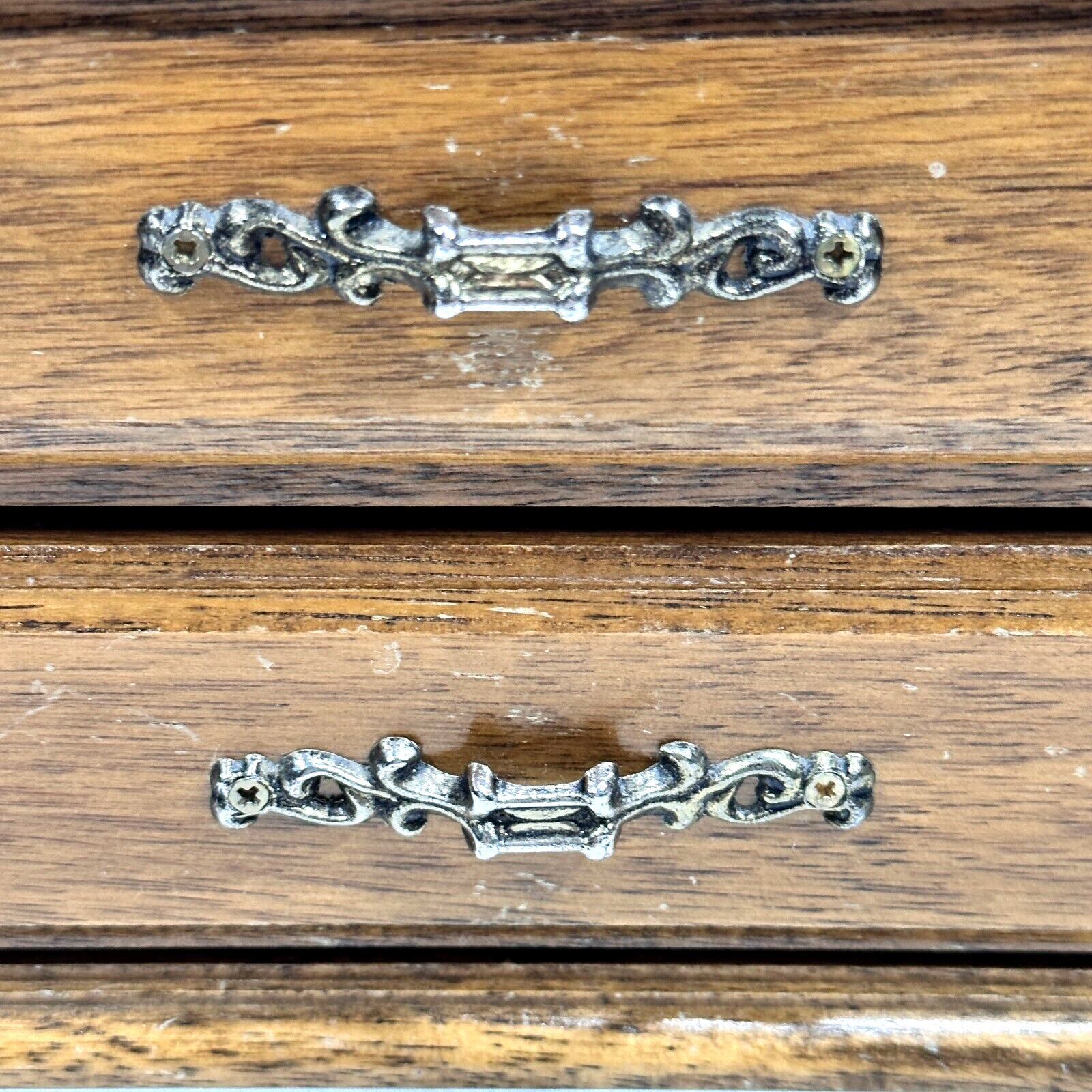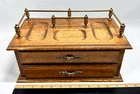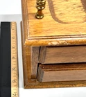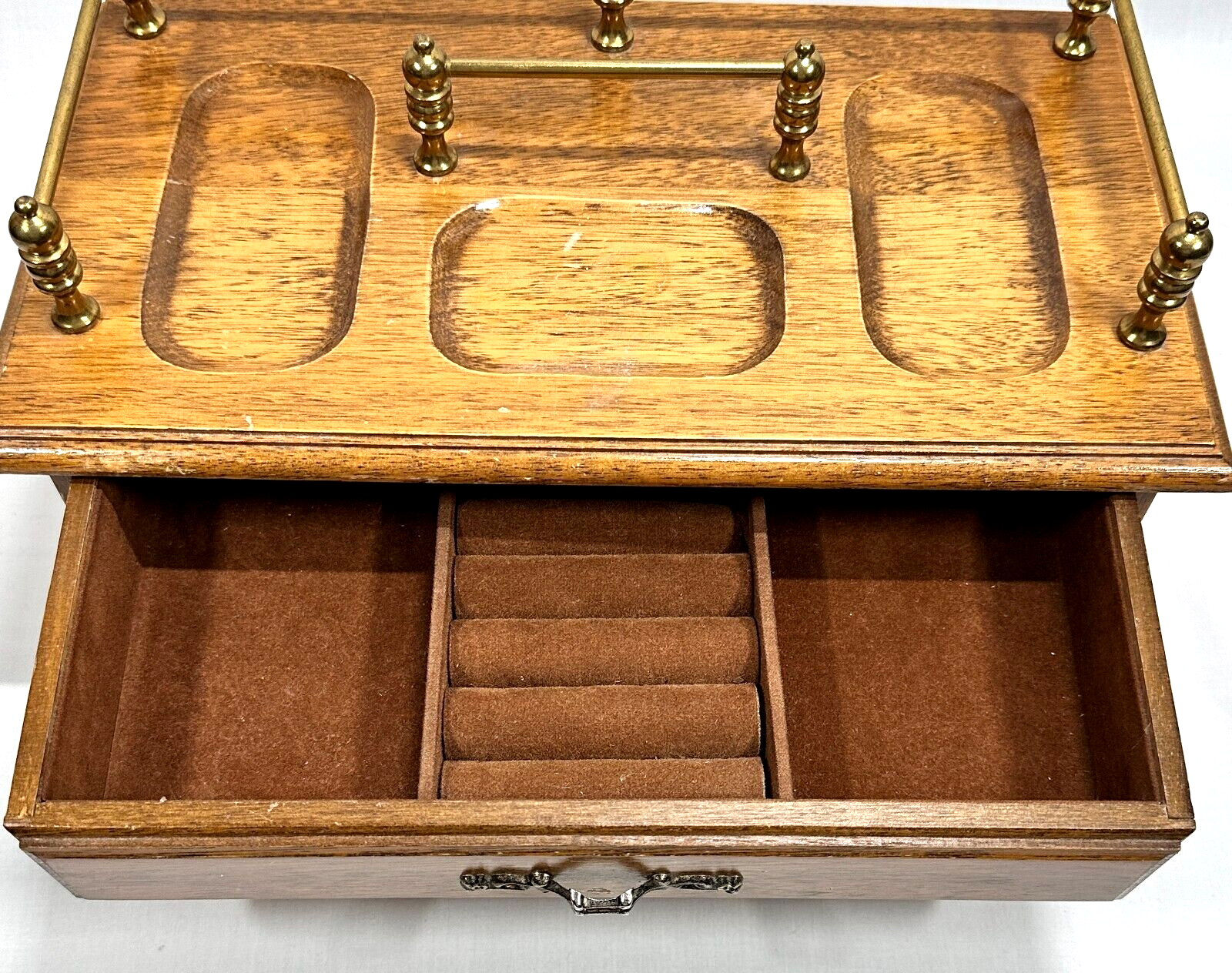 Vintage Mens Wooden Jewelry Box Valet with 2 Drawers Brown Velvet Lining and Brass Finial Top. Good Vintage Condition. One spot where finish is marred on front center coin spot. Some use apparent. See Photos. Thank you for your interest in this item. We will happily combine shipping. Please take a moment to visit our store at: ebay.ca/str/couldntbebettercollectibles – Canadian ebay.com/str/couldntbebettercollectibles – U.S. Like and Follow Us for updates on new finds. Tell us the things you like to collect. Your Feedback is important. Please take a moment to let us know how we did. Happy Shopping.