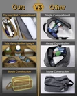 Separate Multiple Pockets: This toiletry bag has dry and wet compartments; The large main compartment keeps dry items; The small waterproof pocket is perfect for storing wet towels and toothbrushes; 2 interior mesh pockets and 3 interior elastic loops keep bottles stand upright and beautifully organized Large Capacity: Dimension: 10 x 4.7 x 5.8 inches; This travel toiletry bag is big enough to hold your essentials from shower gel, face wash, toothbrush, floss, and mouth wash to razor; Wide opening of dopp kit shaving bag makes everything easy to access Sturdy Material: This mens toiletry bag is made of 900D water-resistant fabric for long-wearing durability and easy cleaning; Rectangular shape and long-lasting construction allow it to sit upright Practical Designs: This mens travel bag toiletry features a convenient side carrying handle; The MOLLE design of the front pocket lets you attach small pouches, water bottle pouches, and accessories Multipurpose: Tactical-looking on the outside, this tactical toiletry bag is lightweight and versatile; This toiletries bag is suitable for travel, camping, gym, tools storage, medicine storage Product Description TACTICISM Bags for Outdoor Capacity / / / 12L 12L 20L 24L Dimension 10.2'' x 5.1'' x 5.9'' 10.2" x 4.7" x 5.8" 11.4" x 6.7" x 6.5" 10.6" x 7.8" x 9.4" 10.6" x 7.8" x 9.4" 13.4" x 9.1" x 9.8" 11.8" x 7" x 17.3" Waterproof Insulation Exterior Lining 900D Splash-proof Fabric & PVC 900D Splash-proof Fabric 900D Splash-proof Fabric 900D Splash-proof Fabric 900D Splash-proof Fabric 900D Splash-proof Fabric 900D Splash-proof Fabric