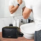 Tested Overall Water-Resistance: The men’s toiletry bag features water-repellent leather material exterior and PVC coated interior, which can protect your toiletries well from water splashes when in the bathroom. The side wet/dry separation has a leak-proof lining that allows wet items like wet towel or swimsuit to be placed in it to prevent liquid spillage. The waxed leather fabric makes the large toiletries bag durable, well-structured, and easy-to-wipe when cosmetic stains adhere. Double-zippered Flap Wide Opening: The large opening cover design of the main compartment provides full access and prevents you from having to dig around inside. You can use the magnetic snap fastener, smooth zippers, and the unique small puller to quickly open the top flap. The combination of zipper & zipper ear makes leather shaving bag easier to hold and zip up and down. With Massive Storage Capacity: 1 Main compartment with elastic straps and mesh pockets hold travel bottles upright, the toiletry organizer is spacious enough to hold all your toiletries or bathroom supplies organized like facial cleanser, shampoo, lotions or shaver, etc.; 2 Side Compartments with multiple pockets and lots of elastic loops better sort your travel toiletries; A great Dopp kit knows how to keep your toiletry necessaries orderly. Durable, Light & Portable: This shaving kit comes with a sturdy handle with which you can carry the makeup bag around easily or hang it in the bathroom. This cosmetic bag is foldable, a perfect size can be packed up or tucked away in the suitcase. Whether you are on a short trip or long journey, it's convenient and roomy enough to fit grooming products and easier to grab things during the trip. Multipurpose Usage: This toiletry bag for man woman can meet your every need no matter you are men, women. It can be used as a toiletry bag, travel organizer, wash bag, makeup bag. Suitable for bathroom, business travel, family trip, holiday sunbathing, gym shower. It’s a versatile waterproof toiletry bag allows easy storage and organization for on-the-go essentials. If you are a frequently traveling man, Lacdo toiletry travel bag is definitely the best choice for you.