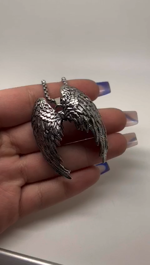 This large stainless steel angel wing feather pendant necklace is a perfect gothic accessory for both men and women. Unisex Design: With a unique design featuring angel wings, this necklace is perfect for both men and women. Daily Wear: Suitable for everyday wear, this necklace can add a touch of gothic flair to any outfit. Pendant Necklace: The long pendant style of this necklace makes it stand out as a statement piece. Crafted with durable stainless steel chain and pendant material, it's sure to last through daily wear. Plus, the pack includes 1 piece of the stunning accessory. Add an edgy touch to your wardrobe with this stylish angel wing feather pendant gothic necklace!